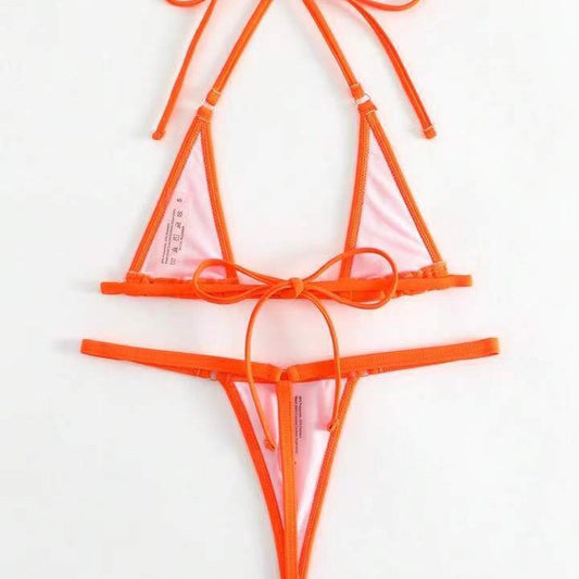 Solid Color Lace-up Bikini Three-point T-back Swimsuit Suit With Chest Pad Beach Womens Clothing