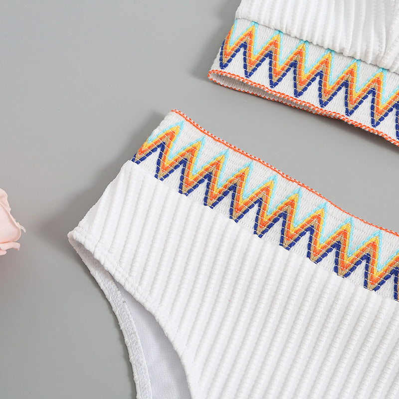 Split Shoulder Strap Chevron Tape Bikini Swimsuit